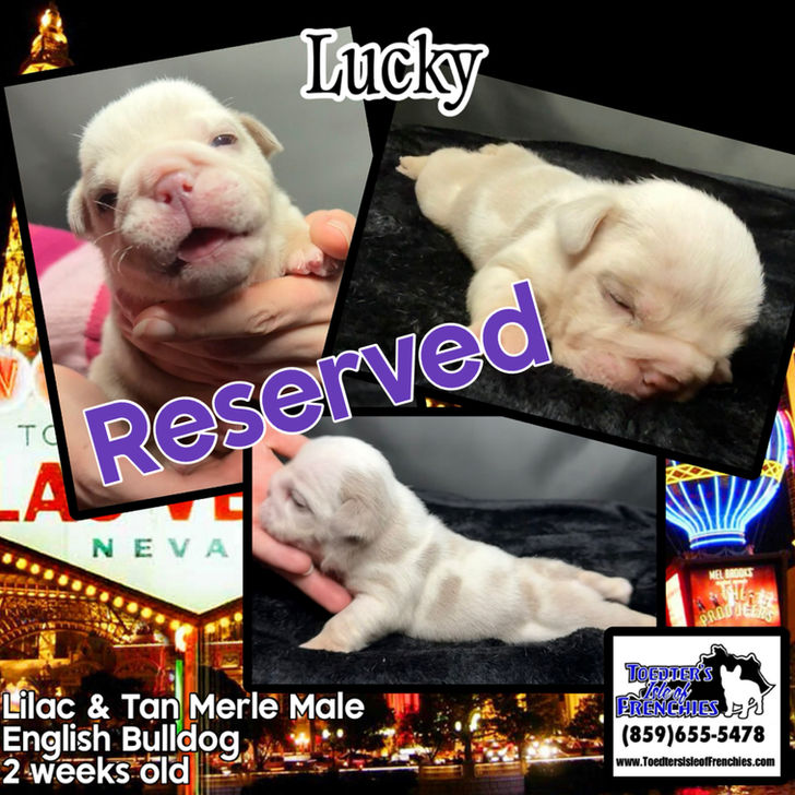 ENGLISH BULLDOGS - Mom - Lilac & Tan Merle & Dad - Black & Tan Pied
